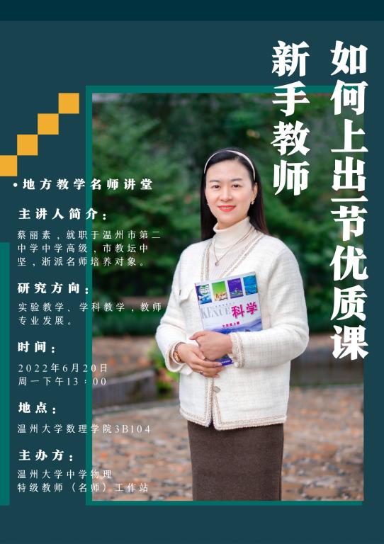 2022年6月20日,球盟会官网中学物理教师(名师)工作站携手球盟会物理专业邀请了温州市第二中学的优秀科学教师——蔡丽素老师,来公司开展了以“新手老师如何上好一节优质课”为主题的“地方教学名师讲堂”。