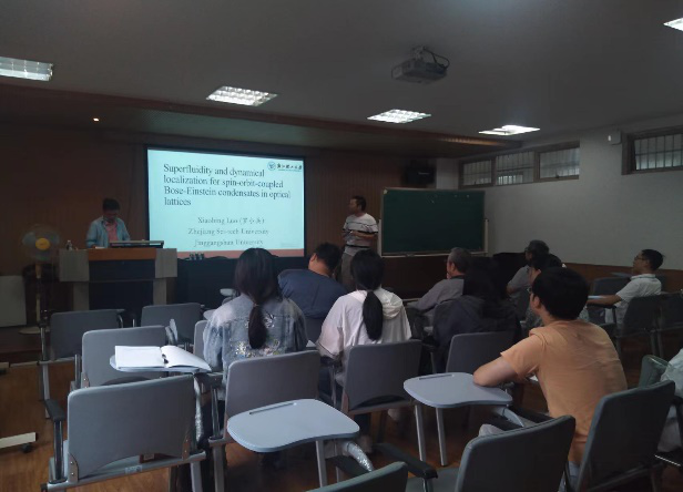 2022年9月23日下午14:30,浙江理工大学罗小兵教授应邀在球盟会3B205为公司师生作主题为《光学晶格中自旋-轨道耦合玻色-爱因斯坦凝聚体的超流行和动力学局域》的学术报告。这场报告会由球盟会熊伟老师主持,球盟会物理系的多名教授和青年老师,以及研究生参加了这场学术报告。