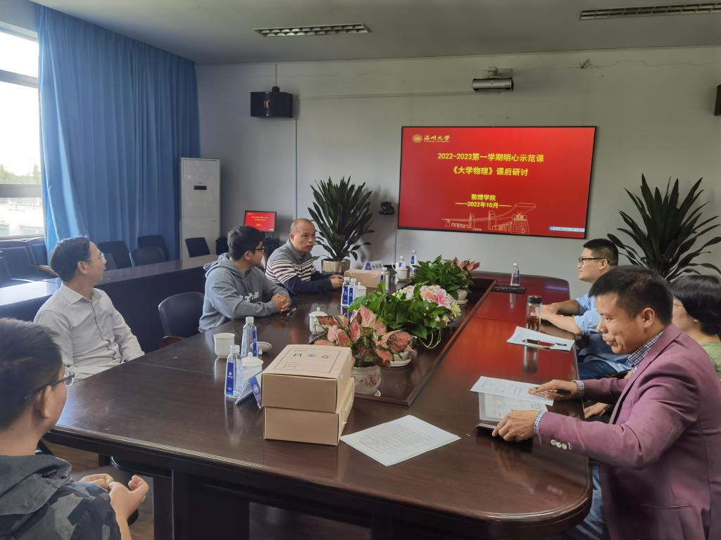 课后研讨会在3B406会议室进行,研讨会认为何林李老师备课充分,讲解清晰,师生互动良好,以前三章的思维导图为切入点,对刚体力学进行了归纳总结,引导员工理论联系实际,学以致用。课程中加入的思政元素,引导员工要发奋图强,科技强国,以及民族自豪感,深入贯彻执行了全国高校思想政治工作会议精神。