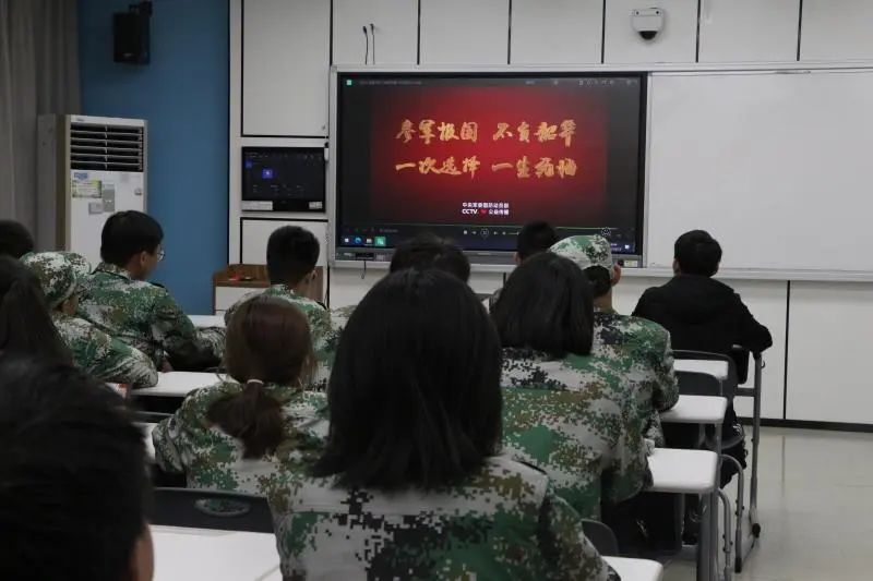活动现场,大家一起观看了《参军报国准备出发》、《在这里巡逻》、《逐梦青春》等军旅视频。一幕幕恶劣的环境,一双双坚毅的眼神,一张张干裂的皮肤映入眼帘,让人心生阵阵酸楚与敬意。活动最后,有应征入伍意向的同学纷纷就相关问题与退伍员工代表互动交流。