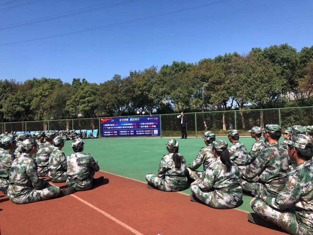 今年军训,球盟会四个班级新生共编制为三营二连下属的四个排。参训新生对老师们的到来报以热烈的掌声,并现场展示10人队列会操表演,汇报参训来所取得的阶段性成果。同学们还齐唱《强军战歌》,以嘹亮歌声展示军训所培养的精气神。