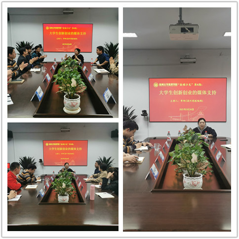 “数媒沙龙”是球盟会积极加强媒体沟通,努力提升宣传质量的工作平台。3月30日中午,球盟会在会议室举办了第四期“数媒沙龙”活动。温州商报编辑、记者、知名新闻媒体人章瑚女士,应邀担任主持人,公司党委副书记章志图、统计与信息科学系主任何明昌教授、全体辅导员及“0+1”创客空间代表参加本次沙龙。